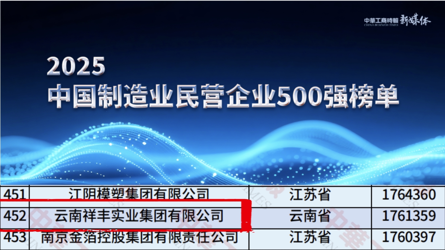 祥豐集團榮登2025中國制造業(yè)民營企業(yè)500強榜單!位列全國...